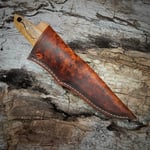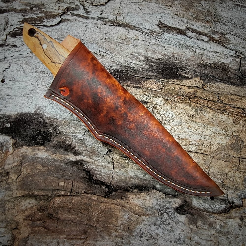 Featuring a razor-sharp 1084 high carbon steel blade and a spalted Pensacola pecan wood handle, this knife boasts solid full-tang construction. The finger groove and back-tapered "fastback" handle provide a secure, comfortable grip. At 6 3/4" overall with a 2 3/4" blade, it’s the perfect EDC knife.